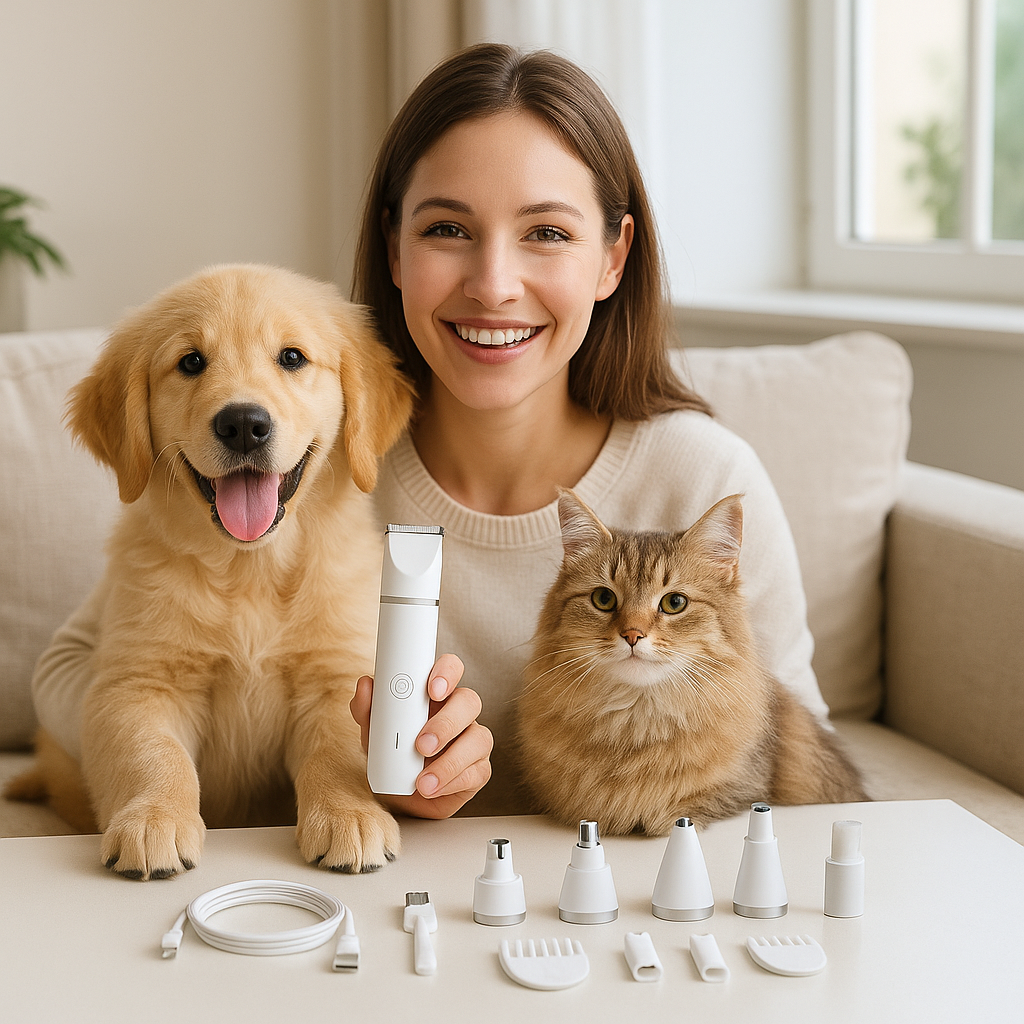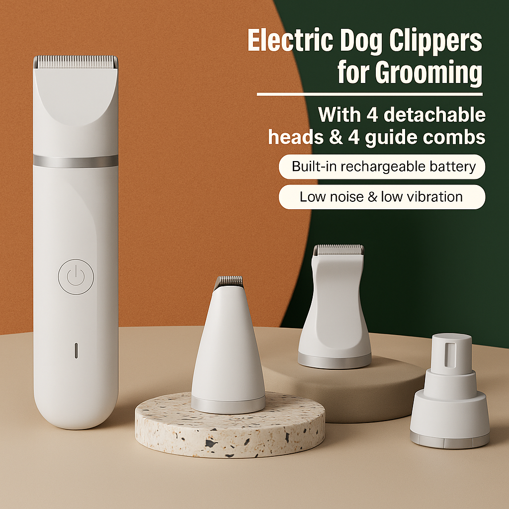 This 4-in-1 grooming kit includes precision blades, multiple guide combs, and a quiet, cordless design for a smooth, comfortable grooming experience at home.